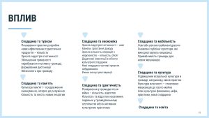 – - Міфи і реальність: існує поширене уявлення про спадщину як про маловідоме минуле та історію, й варто про неї розповісти як це привабить туристів. Проте в дійсності, культурна спадщина — це актив території та ресурс для її розвитку в майбутньому. Вона потребує ефективного управління, створення умов доступності та якісної комунікації для позитивного впливу на життя громади.