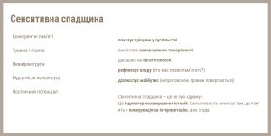 – - Як працювати з конфліктною історією? Війни, втрати, репресії, геноцид та інші травматичні події внаслідок яких виникла сенситивна культурна спадщина. Робота з такими об’єктами та історією потребує уваги та чутливі, проговорення травм яке не переходить у ретравматизацію.